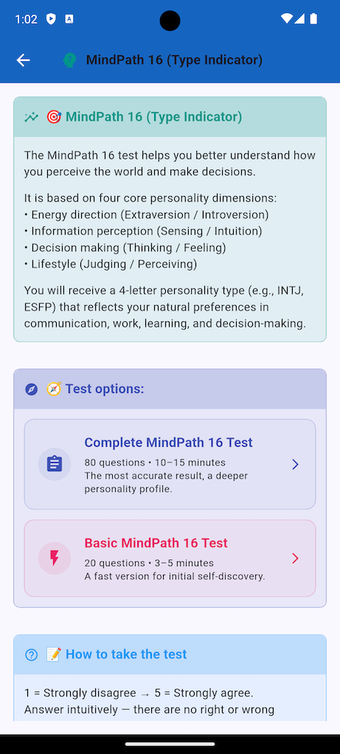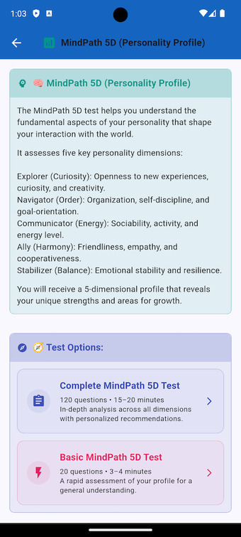 Important Note:This app is designed for educational and reflective purposes only. It is not a medical diagnostic tool or a substitute for professional psychological advice.